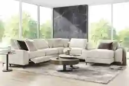 This sectional features a dual power recliner on the right end, allowing you to independently adjust both the headrest and the footrest at the touch of a button. This high-precision motor system enables you to find the exact angle for ergonomic support, whether you are watching a movie or taking a nap.