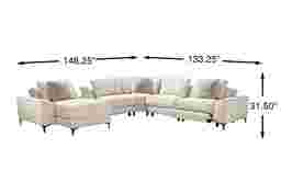 The calm, welcoming warmth of an upscale mountain lodge comes home with the Aspen collections inviting textures, soft hues, and plush comfort. Upholstered in soft, knitted beige fabric, this modern sectional features flare arms, welted seams, and reversible pillow-style back cushions that bring softness and structure into balance. Dual power reclining allows for personalized relaxation with adjustable headrests and footrests. A discreet control panel with built-in USB-A and USB-C ports keeps devices charged without interrupting the flow. The included media console offers an acrylic top to hold decor or books effortlessly, while the front pulls out to reveal integrated USB ports and stainless-steel cup holders. Sleek legs finished in black lift the piece with a graceful touch. Upholstery: 100% Polyester. Cleaning Instructions: Use water-based cleaning agents or foam.