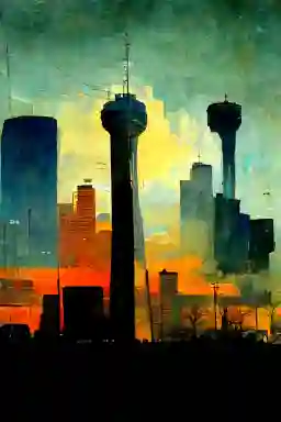 This artwork provides a unique, contemporary depiction of the Reunion Tower, an iconic fixture of the Dallas, Texas skyline. Its abstract style allows it to serve as both a sophisticated piece of modern decor and a tribute to local Texas architecture, making it a perfect conversation starter for residents and admirers of the region alike.