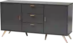 A tasteful expression of modern minimalism, the Aspinwall buffet is an impressive solution to dining storage. With a sturdy wood frame that showcases a dark grey finish and exudes a cool, contemporary character. Three spacious drawers easily organize utensils, while four shelves behind the doors support larger cookware and utilizes gold-tone angled legs for stable support with a luxurious touch and gold handles add an eye-catching touch, making this buffet a refreshing addition to any space. Customer assembly is required.