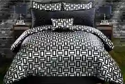 This set is crafted from high-quality polyester, a material selected for its exceptional durability and resilience. Unlike natural fibers, these synthetic fibers are inherently resistant to wrinkling, shrinking, and fading. This ensures that the bold, geometric black and silver pattern maintains its crisp look and vibrant contrast even after regular use.