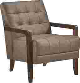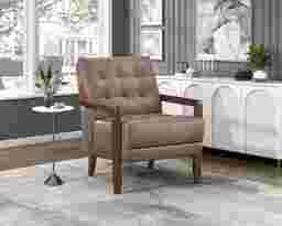 Elevate your living space with this Astin top grain leather match accent chair, designed for timeless elegance, premium comfort, and lasting durability. Featuring a mid-century modern silhouette, deep tufted detailing, and a solid wood frame with sleek armrests, this chair blends sophisticated style with everyday functionality. The plush, high-density foam cushioning provides exceptional support, while the top grain leather match upholstery offers a luxurious look and soft, supple feel. Built with sturdy wooden legs and reinforced construction, this accent chair is perfect for living rooms, home offices, reading nooks, or bedroom seating, adding a touch of refined charm to any decor. Customer assembly is required.