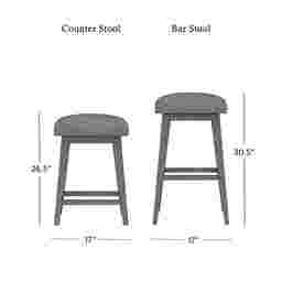 Curate your dining experience with this premium, Atalifo adjustable-height stool with customizable features, such as a solid wood base with steel-reinforced leg extensions. This backless seat has a sleek, modern casual design showcasing angular perfection, and the detachable swivel plate enables either a 360-degree swivel or a stationary setting. Upholstered in a neutral graphite shade, this kid-friendly, pet-friendly fabric is stain resistant and easy to clean, and it complements the gray wash finish of the base. Customer assembly is required.