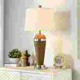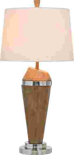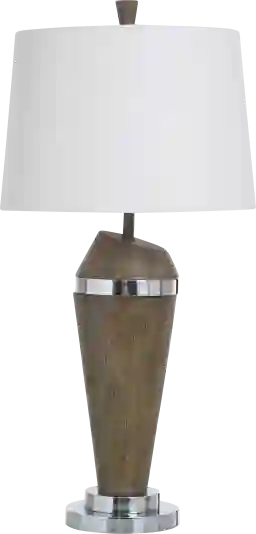 The Atano Brown Lamp is a stunning fusion of natural warmth and modern sophistication. Its tapered wooden body, rich with organic texture, is accented by sleek chrome bands that add a touch of contemporary glamour, creating a design that feels both timeless and bold. The crisp white shade crowns the piece with elegance, diffusing light into a soft, inviting glow that transforms any space into a haven of style. Perfect for a living room or bedroom, this lamp isn't just lighting-it's a statement of refined taste. Bring it home and let it elevate your decor with effortless charm. Partial assembly may be required.