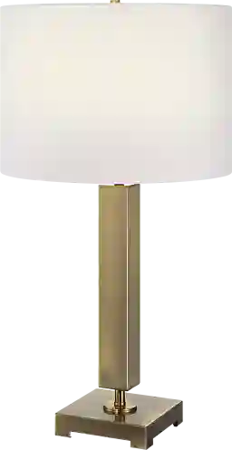 This lamp features a streamlined metal column base, which offers superior stability and long-term durability compared to lighter resin alternatives. The antique brass finish provides a sophisticated, contemporary aesthetic while adding a layer of warm contrast to your space. Based on our interior styling expertise, brass finishes are particularly effective at adding visual warmth to rooms with cooler palettes, such as gray or navy decor.