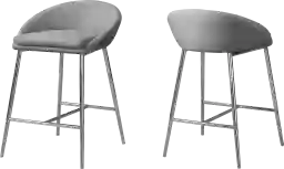 With simple lines and contemporary styling, this Athlone set of 2 counter height bar stools will transform your dining and entertainment area. The soft and smooth cushioned grey fabric seat with a low profile curved back gives a sleek modern look to a room. The sturdy chrome metal base with a convenient foot rest makes it easy and comfortable to hang around whether you are entertaining, jamming out a new tune with friends, or simply dining at the breakfast counter. This is the perfect seating for an open loft, condo, or small eat-in spaces. Customer assembly is required.
