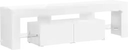 This modern minimalist Atholwood TV Stand will add sophistication to any living room or bedroom. With a high-end glossy white laminate finish high-quality hardware sleek shelving space and durable construction this entertainment center is as practical as it is stunning. The 63 inch top shelf of this media will hold almost any size TV while the 2 storage drawers underneath are seamlessly integrated and provide ample storage. Tempered glass shelves on either side of the drawers provide a unique display area for your photos books or anything else you want to display prominently. Customer assembly is required.