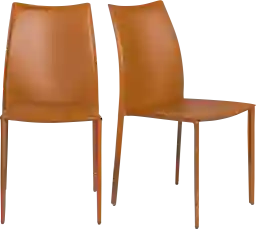 The cognac leather and contemporary straight-leg design make these chairs incredibly versatile for mixing and matching. The warm red-toned cognac hue pairs beautifully with earth tones like beige or olive green, as well as natural wood tables. For a more personalized look, you can easily pair these side chairs with different "captain's chairs" at the head of the table or use them as stylish accent seating in a home office or living area.