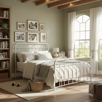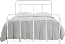 With a simple design that makes styling it up a cinch, the Atticus bed has the look you've been dreaming of. Crafted of metal in a powder coated white finish, this piece features an appearance shaped by clean lines and rounded corners. Side rails bolt to the interior of the head and footboards, enhancing the easy-going silhouette. Cylindrical bun feet cap the look with a magnificent final touch. Mattress and foundation (if required) sold separately.