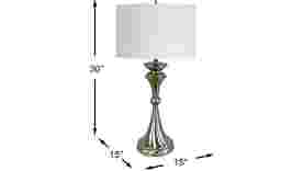 Contemporary styling lights up the room with the sleek Au Courant lamp pair. The brushed metal bases feature a modern ball accent, while classic linen shades add to each lamp's broad appeal. A three way switch controls each max 150 watt bulb (not included).