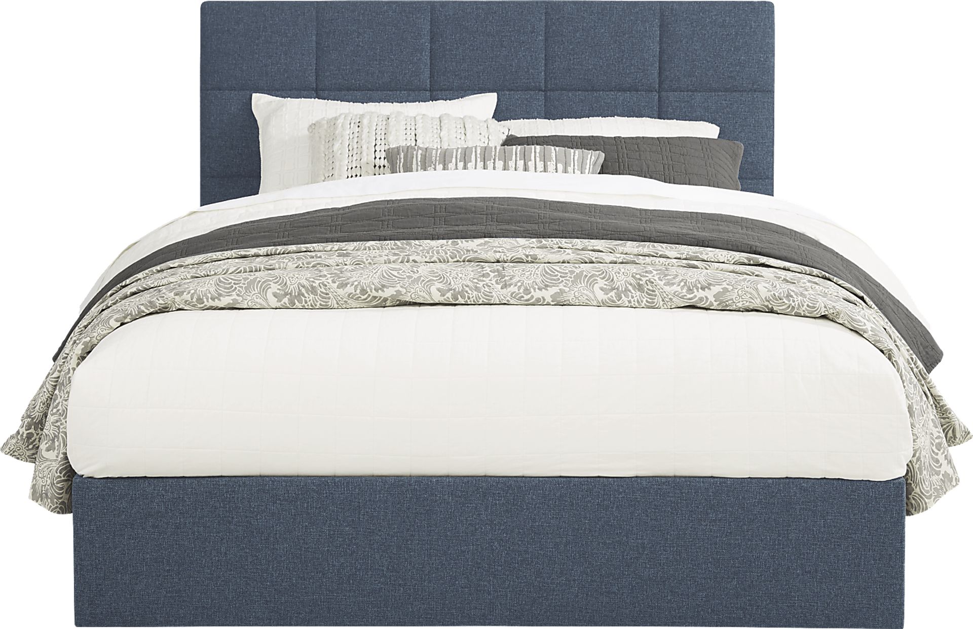 Complete your bedroom with the chic aesthetic of the Aubrielle bed. This beautiful bed is upholstered in soft textured fabric in a beautiful blue color. The square motif on the headboard adds subtle details that keep the look contemporary and eye pleasing. Mattress and foundation sold separately.