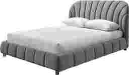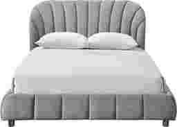 This piece embodies contemporary sophistication through its clean lines and vertical channel-tufted headboard. The contrast between the dark gray upholstery and the warm walnut-colored tapered legs creates a versatile color palette that complements a variety of modern interiors, from minimalist lofts to transitional suburban homes.