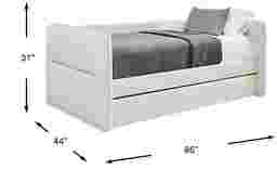 This daybed features a convenient pull-out glide system. By giving the front rail a gentle tug, the twin trundle glides out easily on its tracking, instantly providing an extra sleeping surface for guests. This "pull-out" style is a highly reliable, space-saving solution compared to pop-up alternatives, as it maintains a low profile that stays tucked away during the day.