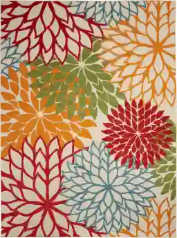 The sunny and sensational flat-woven indoor/outdoor Audry rug is pretty, practical, and perfect for high-traffic areas. With its inviting contemporary design, tempting color palette, and terrific texture, this multipurpose rug will afford an air of simple sophistication to any environment. Flat Woven and made of 100% polypropylene, this outdoor rug features soft cut pile and textural woven patterns in bursts of brilliant color sure to enliven any outdoor space. Oversized floral patterns in red, blue, orange, green, and camel add a festive touch of the tropics to your patio or deck. This rug is created from premium stain-resistant fibers for long wear, low maintenance, and a splendid texture.