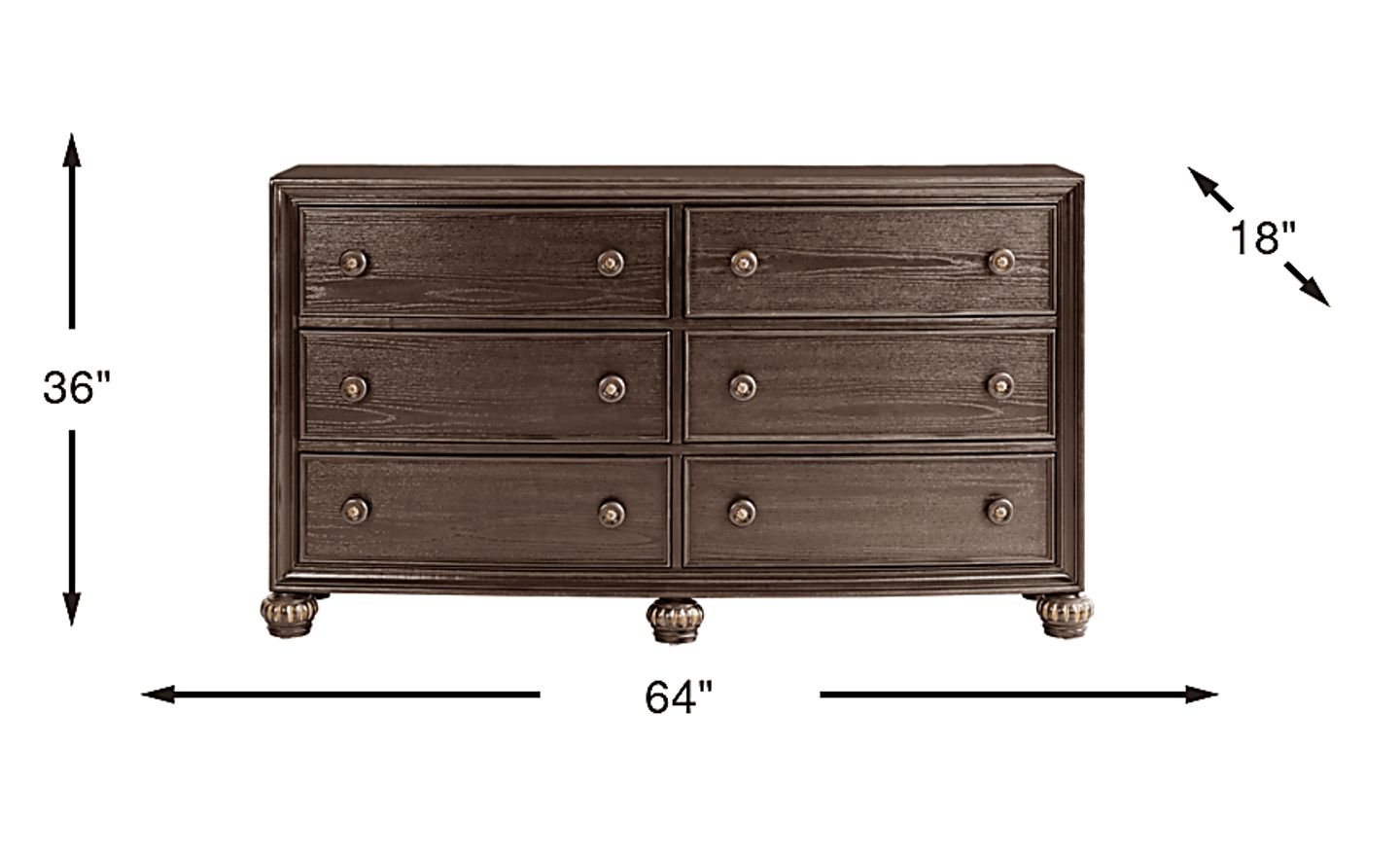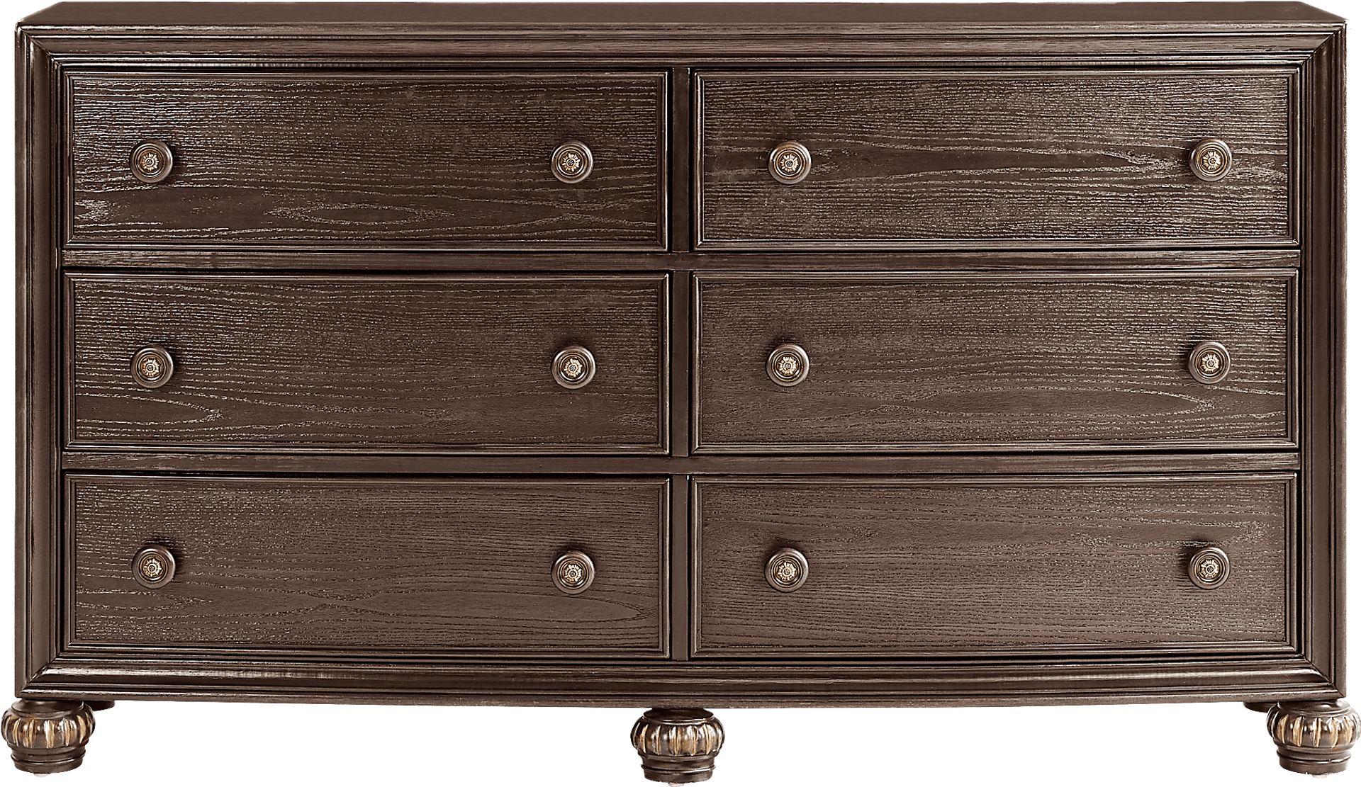 Utter enchantment meets soulful warmth, effortless charm and an abundance of elegance in the stunning Augustine collection. Crafted in a rich, brown ivory-brush glaze finish, this dresser is made with six drawers that are perfect for keeping folded garments from your wardrobe neat and organized. Each drawer features smooth-gliding drawers with dovetail construction and pewter-accented knobs, giving the piece a refined, functional touch.