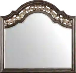 Utter enchantment meets soulful warmth, effortless charm and an abundance of elegance in the stunning Augustine mirror. The piece's eye-catching arch instantly draws you in with its graceful silhouette, setting the tone for a sophisticated bedroom collection. Crafted in a rich, brown ivory-brush glaze finish, look features ornate carvings that play alongside resin moldings.