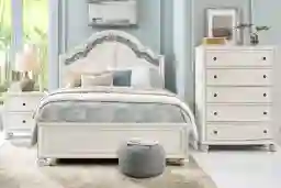 Augustine White 5 Pc King Arched Panel Bedroom