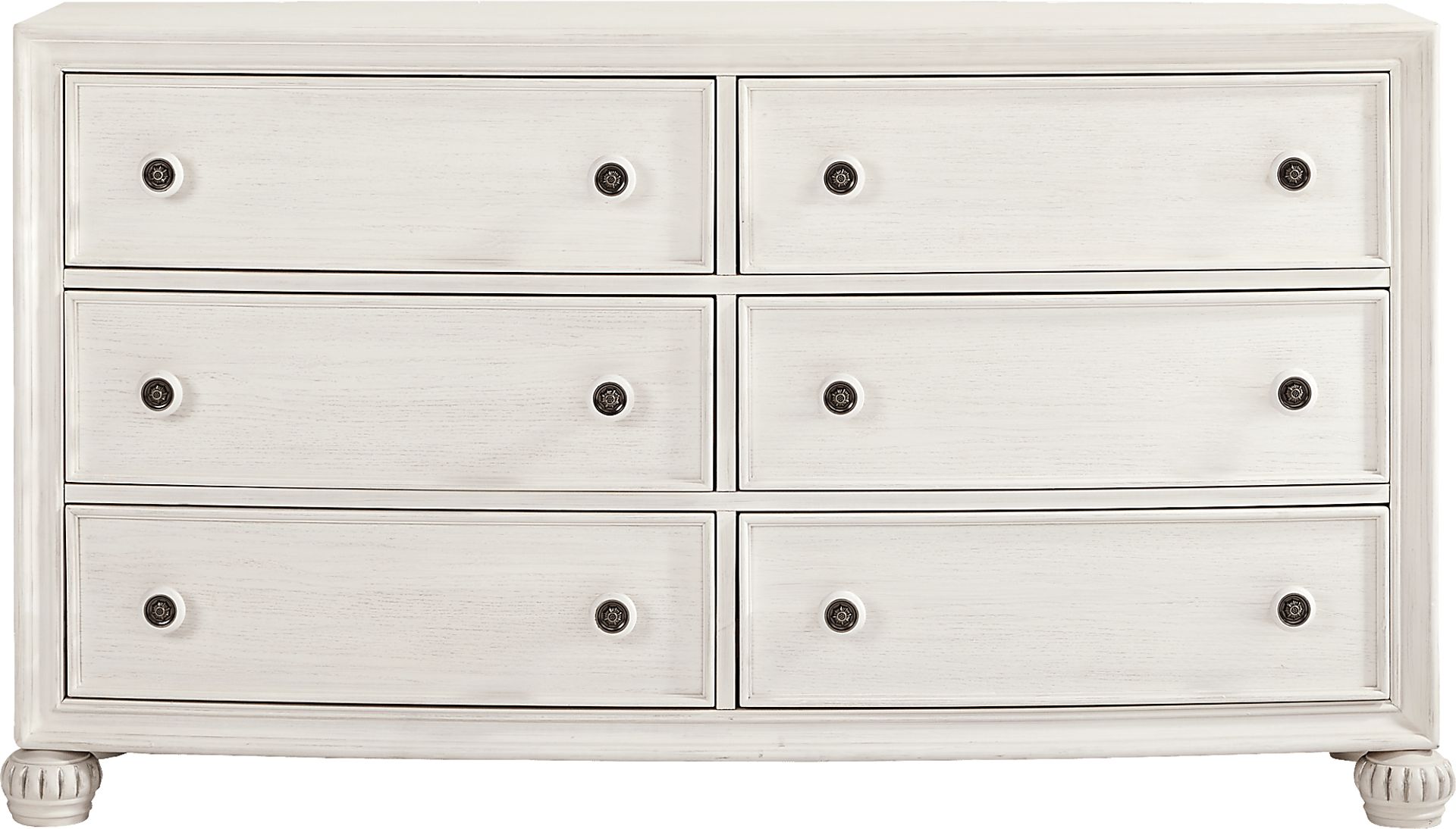 Utter enchantment meets soulful warmth, effortless charm and an abundance of elegance in the stunning Augustine collection. Crafted in a rich, white ivory-brush glaze finish, this dresser is made with six drawers that are perfect for keeping folded garments from your wardrobe neat and organized. Each drawer features smooth-gliding drawers with dovetail construction and pewter-accented knobs, giving the piece a refined, functional touch.