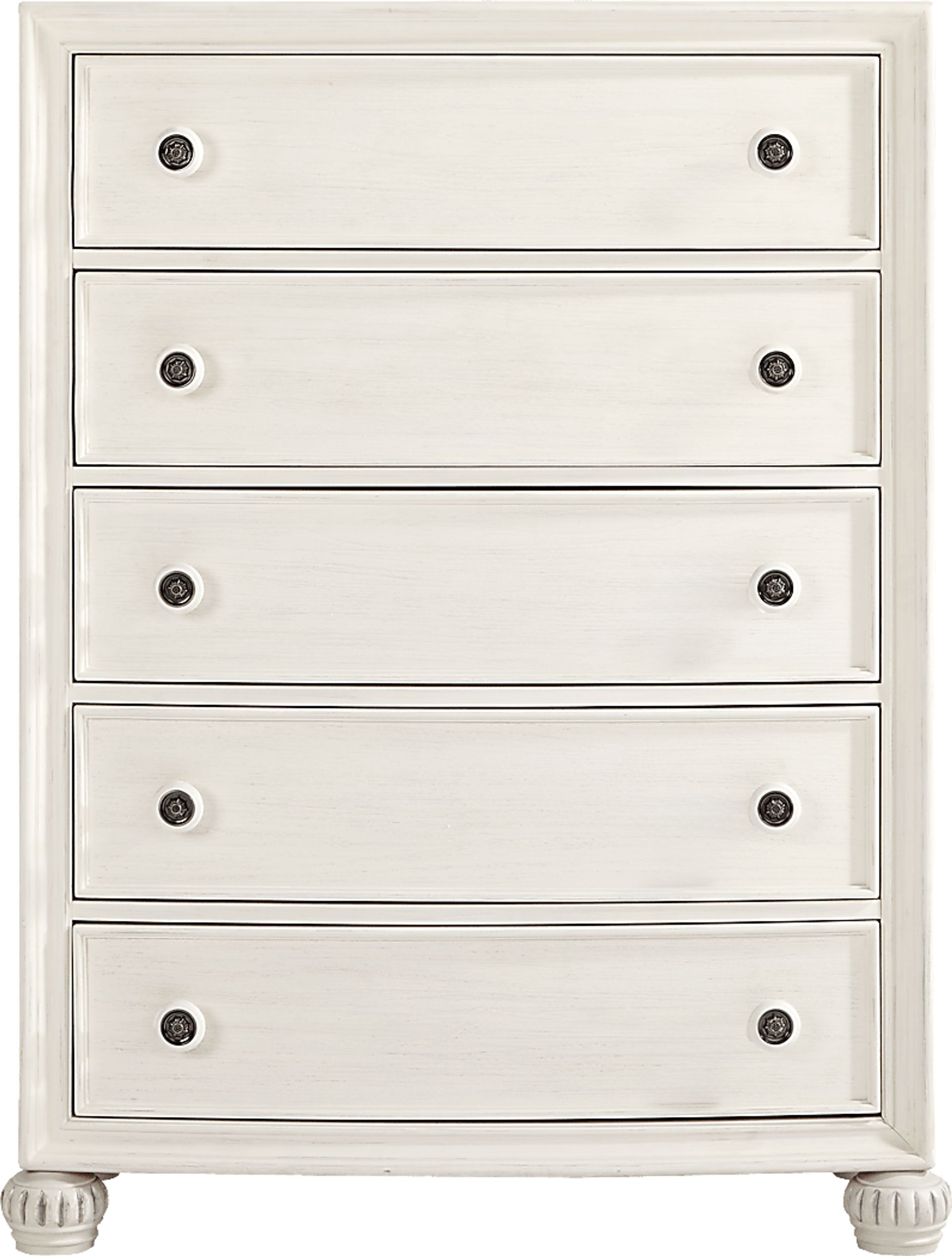 Utter enchantment meets soulful warmth, effortless charm and an abundance of elegance in the stunning Augustine collection. Crafted in a rich, white ivory-brush glaze finish, this chest is made with five drawers that are perfect for keeping garments from your wardrobe neat and tidy. Each drawer features smooth-gliding drawers with dovetail construction and pewter-accented knobs, giving the piece a refined, functional touch. Additionally, the chest's lift top feature opens to reveal a hidden accessory organizer and framed glass mirror.