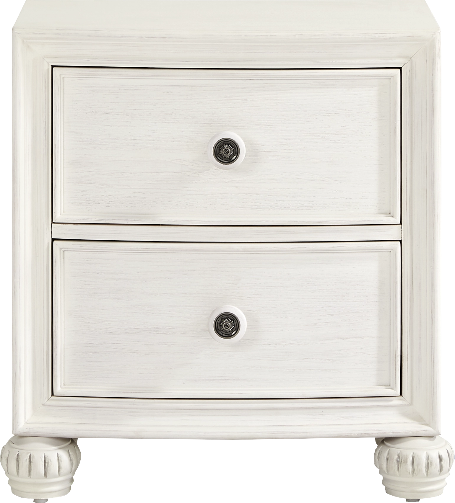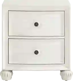 Utter enchantment meets soulful warmth, effortless charm and an abundance of elegance in the stunning Augustine collection. Crafted in a rich, white ivory-brush glaze finish, this piece features two drawers with smooth-gliding drawers and dovetail construction. Pewter-accented knobs give the look a refined, functional touch.