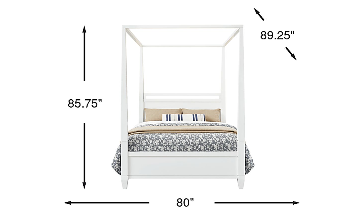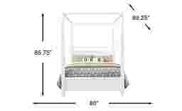 Take minimalism to new heights with the dreamy Aurora Heights king bed. Crafted from a blend of wood solids in a white finish, this piece features a sleek canopy silhouette with neatly tapered posts and a tall headboard with touch LED lights that add incredible depth and dimension. Triangle shaped feet highlight the footboard's simple panel design for a chic final look. Mattress and foundation (if required) sold separately.