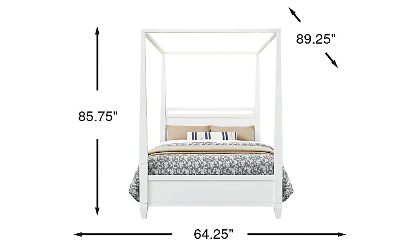 Take minimalism to new heights with the dreamy Aurora Heights queen bed. Crafted from a blend of wood solids in a white finish, this piece features a sleek canopy silhouette with neatly tapered posts and a tall headboard touch with touch LED lights that add incredible depth and dimension. Triangle shaped feet highlight the footboard's simple panel design for a chic final look. Mattress and foundation (if required) sold separately.