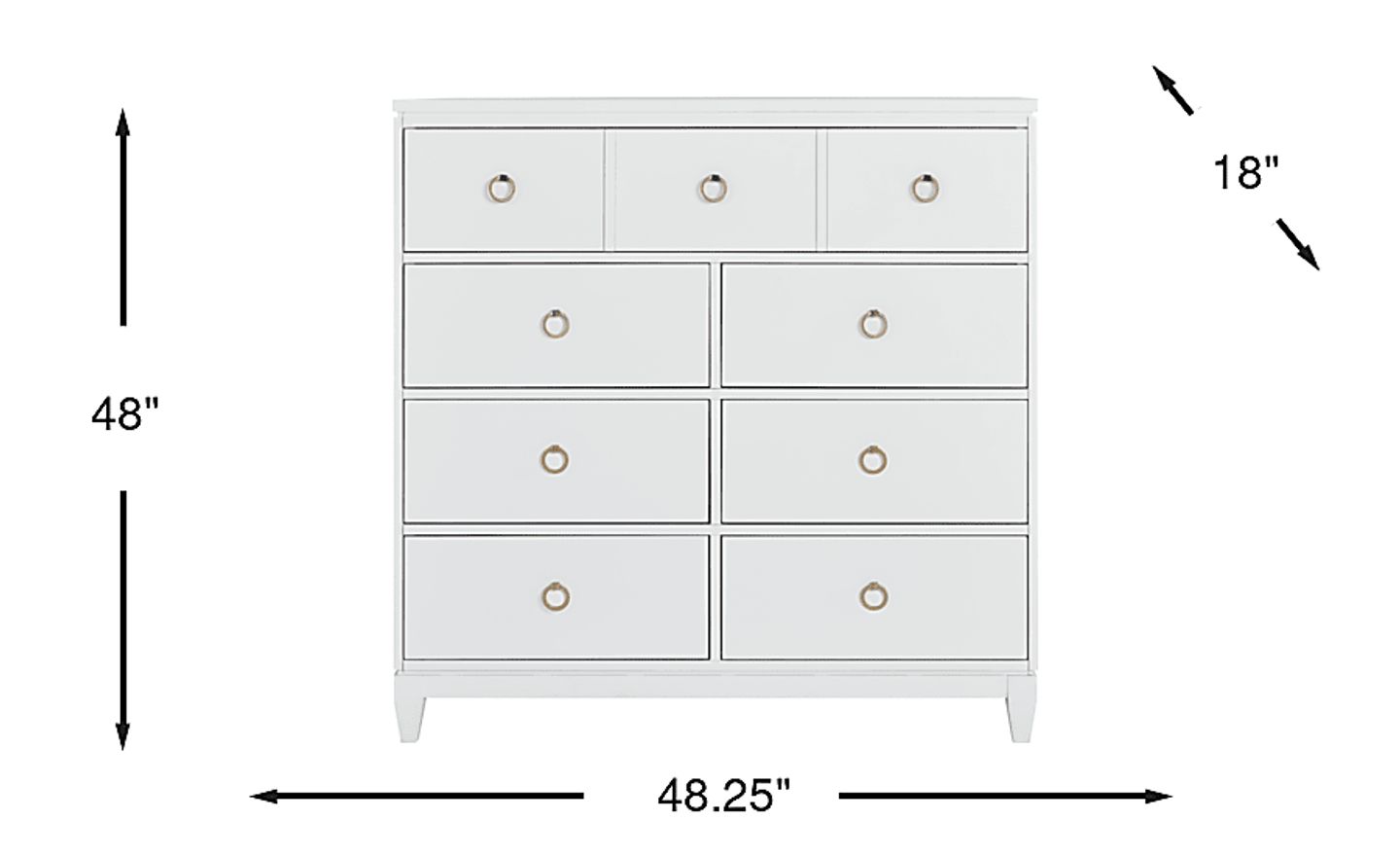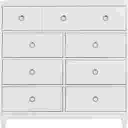 Maximize your bedroom storage with the minimalist style of the Aurora Heights bureau. Crafted from a blend of wood solids in a white finish, this bureau features seven drawers of varied sizes. Each drawer is constructed with French dovetail joints in the front and English dovetail joints in the back with side mounted, ball bearing glides. Felt lined top drawers help to buffer delicate items such as jewelry and other small accessories. Iron ring hardware embellishes each drawer an irresistible final look.