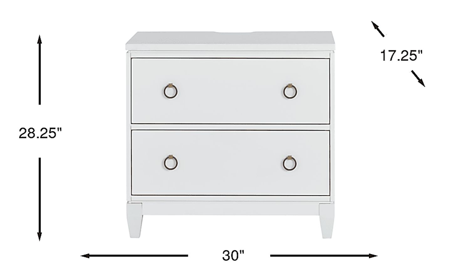 Maximize your bedside storage with the minimalist style of the Aurora Heights nightstand. Crafted from a blend of wood solids in a white finish, this piece features two drawers constructed with French dovetail joints in the front and English dovetail joints in the back. Side mounted, ball bearing glides make opening and closing the drawers a breeze. You can even charge some of your favorite devices with the USB ports located alongside the power outlets on the back of the nightstand. Iron ring hardware embellishes each drawer an irresistible final look.