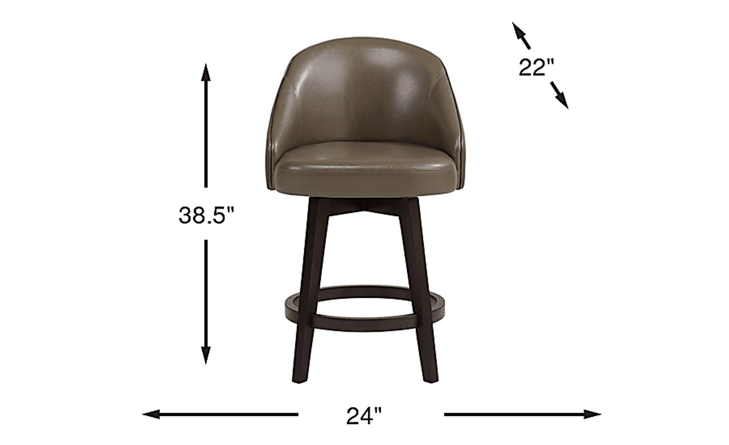 The Austra set of two swivel counter height stools combines visual appeal and quality craftsmanship. Built with hardwood solids, the versatile transitional design makes it perfect for a cozy night in or a lively cocktail hour. Neutral sage upholstery with a leather-like feel complements the stool's rich espresso finish. Featuring 360-degree swivel movement and a circular footrest for comfort and convenience, these stools are a great choice for your home.