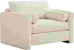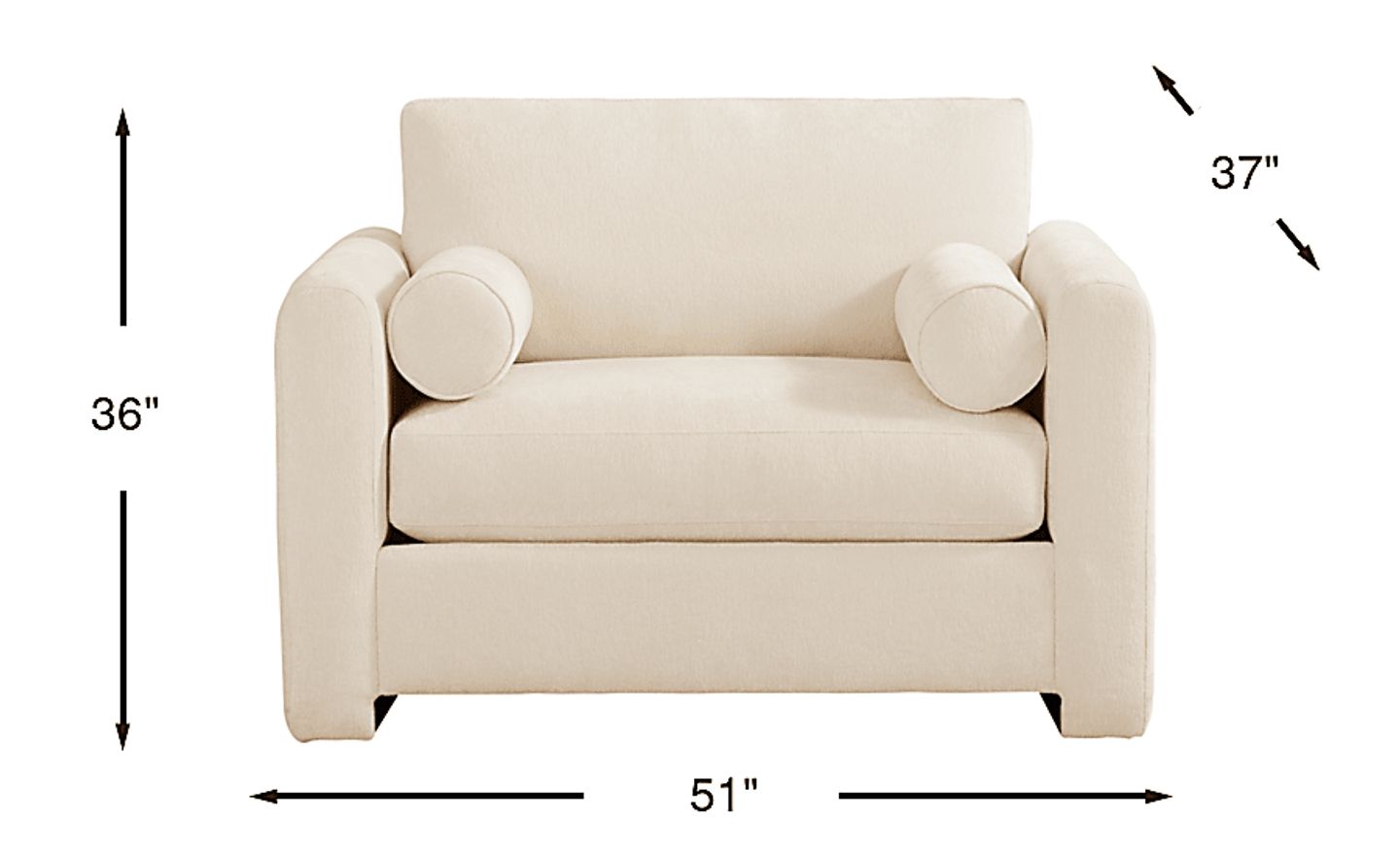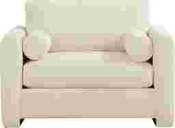 A relaxed, artful energy settles the space with the Avara collection, where modern comfort meets bold personality. Wrapped in beautiful ivory chenille, this contemporary chair showcases clean lines and graceful curves with its matching bolster pillows and rounded track arms that flow seamlessly to the floor for a subtle lift. The deep seat cushion and supportive back cushion complete the look with sink-in comfort that stays polished and composed. Upholstery: 100% polyester.
