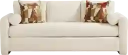 A relaxed, artful energy settles the space with the Avara collection, where modern comfort meets bold personality. Wrapped in beautiful ivory chenille, this contemporary sofa showcases clean lines and graceful curves with its matching bolster pillows and rounded track arms that flow seamlessly to the floor for a subtle lift. Deep seat cushions and supportive back cushions complete the look with sink-in comfort that stays polished and composed. Upholstery: 100% polyester.