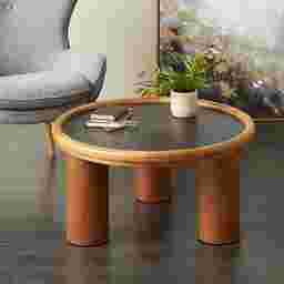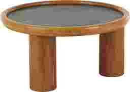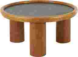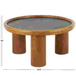 Designed with a free-spirited charm where vibrant hues, eye-catching patterns, and whimsical accents transform your space and showcase your personality. The Avele I coffee table is made from high-quality pine wood, MDF, ash veneer, and PVC material, ensuring both style and longevity. This round living room furniture features a rich, varnished brown finish with a sleek black tabletop offering a unique charm to any living area. This pine coffee table boasts a brown frame and legs that contrast well with its black tabletop. Customer assembly is required.