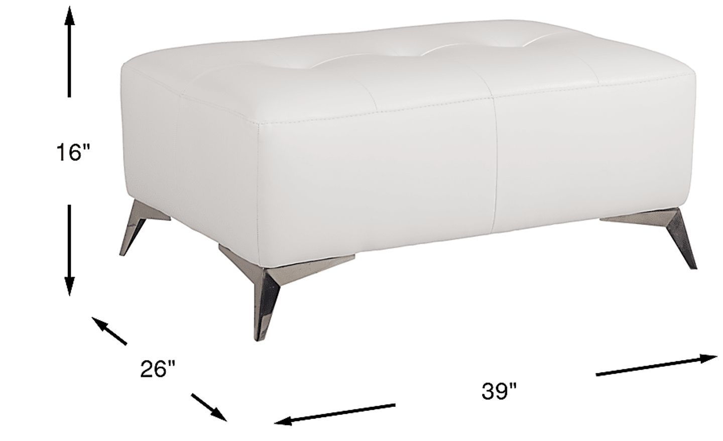 Affording chic contemporary design and made in Italy, the Avellino cocktail ottoman is an elegant addition to your living room. Upholstered in sumptuous top grain leather where the body touches, this piece transforms between a footrest, cocktail table and extra seat. Its clean white color and tufting detail emphasize a luxurious style. Chrome-finished metal legs complete this ottoman's decidedly modern look. Upholstery: Top grain leather where the body touches and vinyl sides and backs.