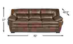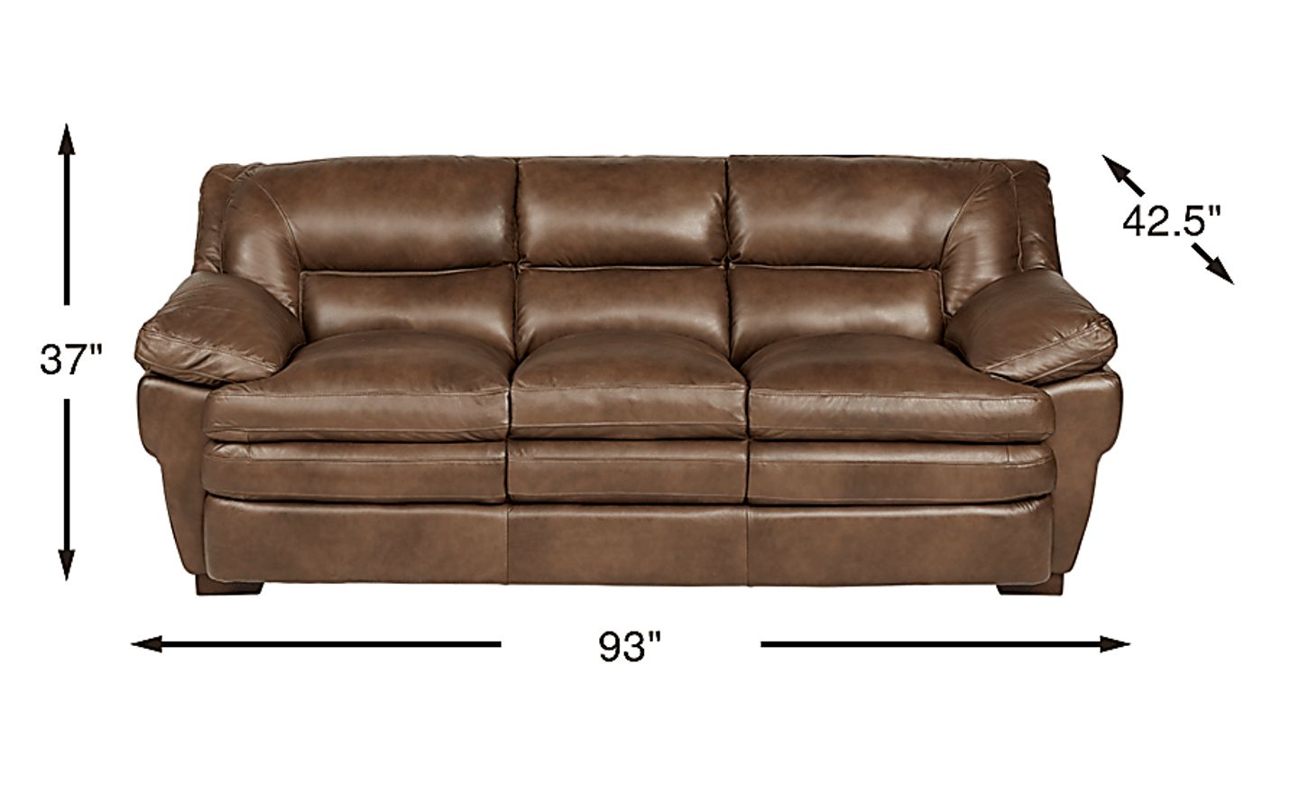The Aventino sofa is an inviting choice, bringing a stylish transitional style to your living area. Pillowtop arms and cushions are padded for comfort, while double channeled backs offer lumbar support. A frame constructed from hardwood solids features high resiliency seat webbing and reinforced corner blocks for a supportive seating experience. An exquisite example of fine leather upholstery, the supple feel and rich tobacco brown color combine beautifully in this timeless seat. Attached cushions create a tailored, clean look. 100% Leather: Top grain leather where the body touches and split grain leather on the sides and backs.