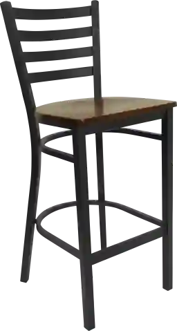 The Averil barstool with a black ladder back and mahogany wood seat will be an attractive addition to your bar, lounge, or game room at home. The chair features an 18 gauge steel frame in an attractive ladder back design with a welded joint assembly. Two curved support bars give the chair great strength and durability as well as a built-in footrest. Plastic floor glides protect your floors by sliding smoothly when you need to move the stool.This metal restaurant chair is a commercial grade chair that would also look great in your home. Customer assembly is required.