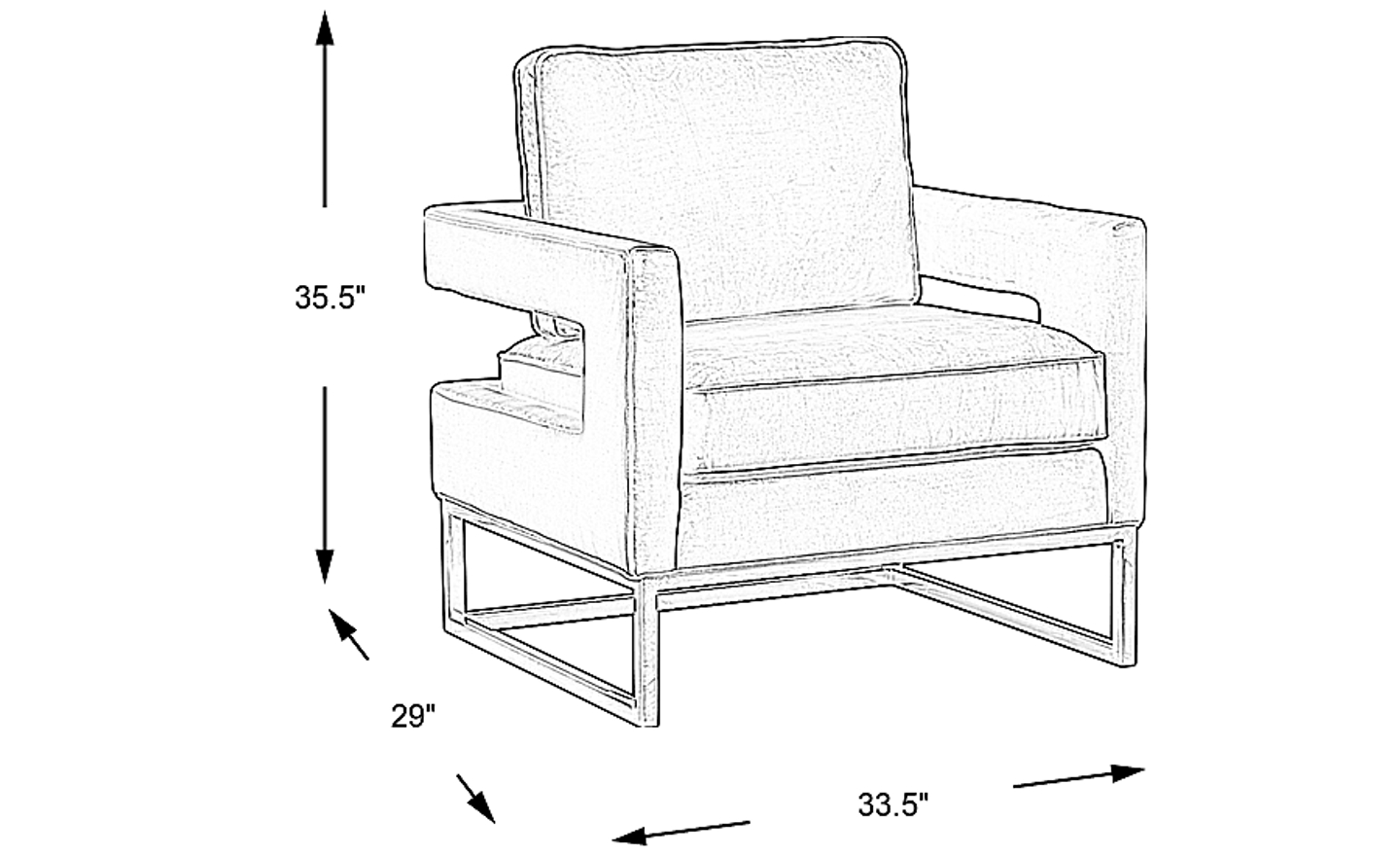 Sophisticated seating at its finest, the Avery chair cuts a sleek silhouette. Featuring soft velvet blue upholstery and a contrasting gold toned metal base, this plush chair's unique track arms with cutout detailing give it an upscale, glamorous appeal. 100% Polyester.