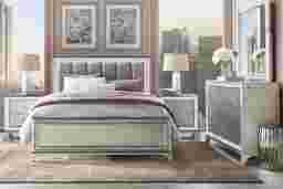 Greet the day with a splash of glamor when the Avery bedroom's dazzling design puts the final lavish touch on your rest and recharge room. Contemporary in style, this bed features a shimmering frame with crystals and LED lights highlighting the upholstered headboard in a stunning display of light and style. The accompanying dresser features the same LED frame with crystal adornments and hardware for a cohesive display. Each drawer includes French dovetail construction in the front, English dovetail in the back, and dustproof bottoms to ensure support and longevity, and the mirror's sparkling frame and beveled design add the perfect final touch. Mattress and foundation (if required) sold separately. Bed shown is queen size.