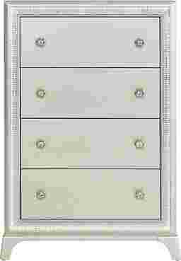 Greet the day with a splash of glamor when the Avery bedroom's dazzling design puts the final lavish touch on your rest and recharge room. Contemporary in style, this chest features a shimmering LED frame with crystal adornments and hardware for a luxurious display. Each drawer includes French dovetail construction in the front, English dovetail in the back, and dustproof bottoms to ensure support and longevity.