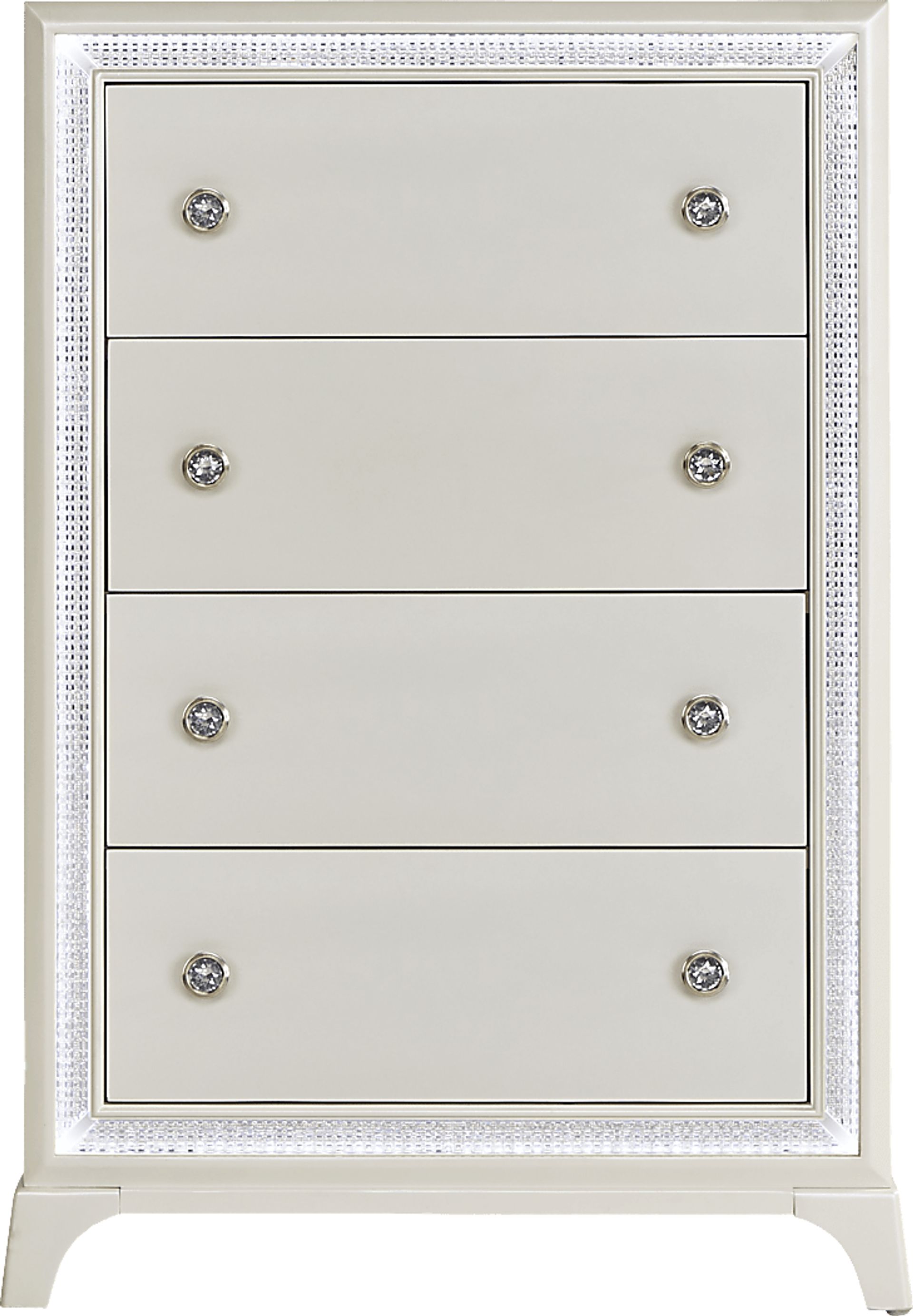 Greet the day with a splash of glamor when the Avery bedroom's dazzling design puts the final lavish touch on your rest and recharge room. Contemporary in style, this chest features a shimmering LED frame with crystal adornments and hardware for a luxurious display. Each drawer includes French dovetail construction in the front, English dovetail in the back, and dustproof bottoms to ensure support and longevity.