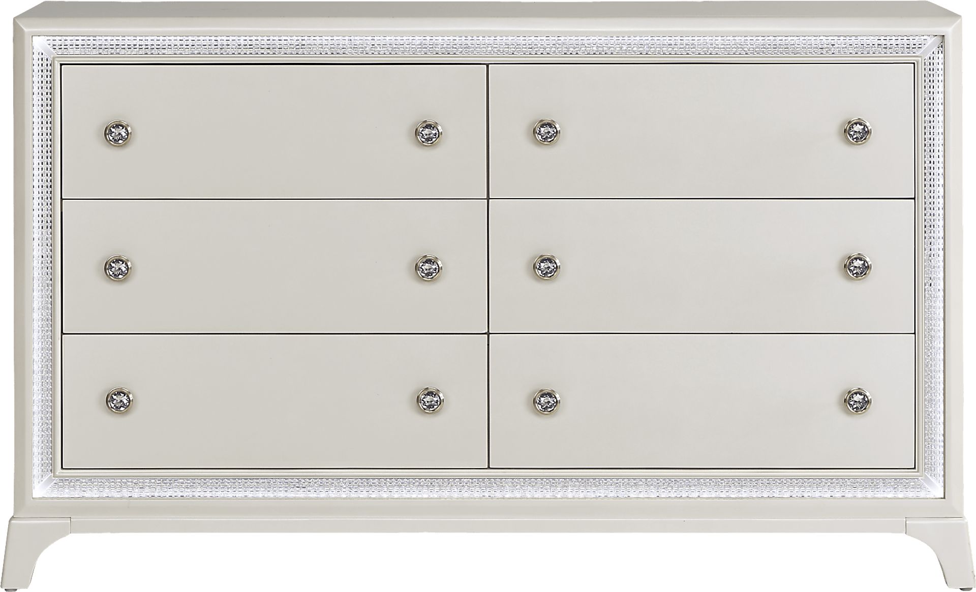 Greet the day with a splash of glamor when the Avery bedroom's dazzling design puts the final lavish touch on your rest and recharge room. Contemporary in style, this dresser features a shimmering LED frame with crystal adornments and hardware for a luxurious display. Each drawer includes French dovetail construction in the front, English dovetail in the back, and dustproof bottoms to ensure support and longevity.