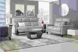 Chic design with modern appeal, the Avezzano living room embodies luxe comfort and styling. Upholstered in soft stone top grain leather where the body touches, the pieces of this sleek collection boast bustle back cushion design, as well as angled tapered legs for an elevated look. Both the love seat and sofa boast dual power reclining capabilities, allowing the headrests and footrests to be adjusted with the touch of a button. Upholstery: Top Grain Leather Where the Body Touches and Vinyl Sides and Backs. Leather is a durable, low maintenance product; however, general regular maintenance is necessary. To keep your leather clean, vacuum it regularly, removing any dust, and clean it with water and a mild non-detergent soap. Accent pillows not included.