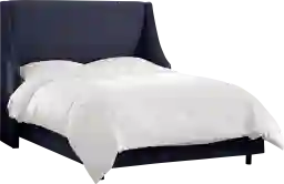 Elegance and luxury unite with the exquisite Aviana wingback bed. Upholstered in rich navy velvet and delicately handcrafted with plush foam padding for added support and comfort, this stylish bed is sure to add instant panache to your bedroom decor. Customer assembly is required. Foundation required. Mattress and foundation sold separately. This piece is made to order and may take up to 6 weeks to deliver.