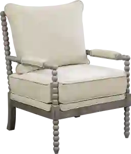 The Avinelle accent chair transforms the living room with a chic farmhouse design. The chair is characterized by its turned spindle detailing, padded armrests, and distressed wire brush finish. Blending a hardwood frame with a reversible plush seat, the Avinelle is perfect for those cozy moments at home. Customer assembly is required.