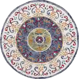 Complete your home with this stunning hand-tufted Ayanka Ivory 4' Round Rug, made from 100% wool. Its traditional medallion floral filigree pattern bursts with vibrant hues of ivory, blue, green, red, and yellow. This multicolor masterpiece offers both durability and timeless elegance, perfect for enhancing any room with a touch of sophisticated charm. Hand-Tufted with tight looped construction to minimize natural wool shedding & fraying. Reinforced with 100% cotton backing for durability and high-quality construction. Perfect shape and style for kitchen, dining room, bedroom, or living room. Soft 0.5 pile height for everyday comfort & heavy duty feel.