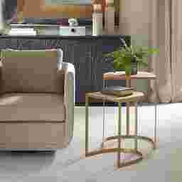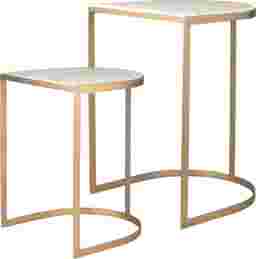 Absolutely. These nesting tables are specifically designed to maximize functionality in compact living spaces. The semi-circle, modular design allows you to tuck the smaller table under the larger one when not in use, preserving valuable floor space. When entertaining, they can be easily separated to provide additional surfaces for guests, making them an ideal multi-functional solution for modern urban homes.