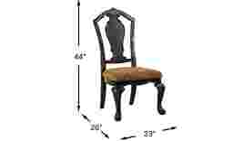 Add elegant seating to your formal dining area with the Aylesbury side chair. Crafted from wood solids with cherry and primavera veneers in a rich brown cherry finish, the wood back features brushed gold-tipped carvings for added sophistication. A padded upholstered seat cushion in a paisley print adds stylish comfort.