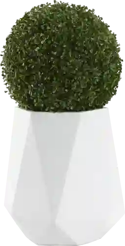 This piece is crafted to mimic the dense, manicured look of a live boxwood topiary. The ball-shaped design provides a classic, high-end aesthetic, while the UV-resistant coating prevents the "shiny plastic" look often associated with lower-quality artificial plants. The contrast between the lush green foliage and the modern, white geometric planter creates a professional, "landscaped" appearance immediately upon placement.