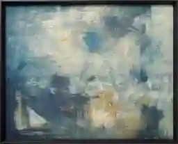 What defines the "oil painting style" of this blue abstract artwork?