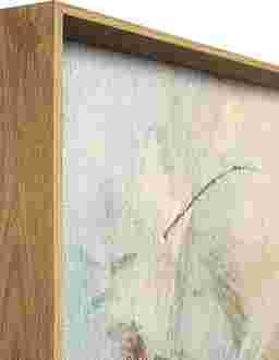 Azia is abstract wall art with an oil painting style in a neutral and blue palette, a beautiful accent for modern home decor. The square artwork is crafted from polyester, measuring 33" x 33". Each piece is custom-framed, so dimensions may vary slightly (up to 1").