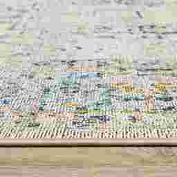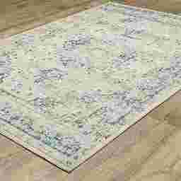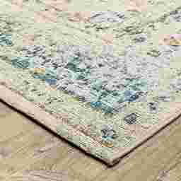Like footsteps along a gravel path and the hush of clipped hedges brushing against weathered marble, the Azure Mist rug's regal blend of beige, blue and white carry the quiet grace of a dew-kissed statuary garden. A classical design of botanicals and geometric shapes bloom across a flat woven surface, fade-resistant and easy to love. 100% Polypropylene.
